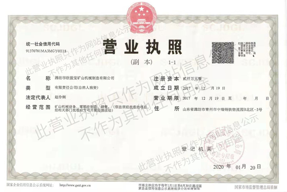 濰坊市歐駿寶礦山機(jī)械制造有限公司,位于山東省濰坊市青州市經(jīng)濟(jì)開發(fā)區(qū)康圣路與文苑街交叉口東南側(cè)。 是一家以生產(chǎn)重型礦山機(jī)器為主,集生產(chǎn)、銷售為一體的獨(dú)資企業(yè)。擁有5000平方米標(biāo)準(zhǔn)化工業(yè)廠房,各金加工、切割、焊接、裝配設(shè)備近百臺,我們有一支從業(yè)經(jīng)驗(yàn)豐富、有責(zé)任心的團(tuán)隊(duì)。公司以科學(xué)的管理方法,精益求精的制造工藝竭誠為用戶服務(wù)。濰坊市歐駿寶礦山機(jī)械制造有限公司視質(zhì)量為生命,并一貫遵循對工序負(fù)責(zé),對產(chǎn)品負(fù)責(zé),對用戶負(fù)責(zé)的質(zhì)量方針,竭誠為用戶服務(wù)。
